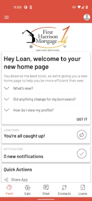 • Easily access contact information for your First Harrison Mortgage Loan Officer and real estate agent and share this information with your family and friends.