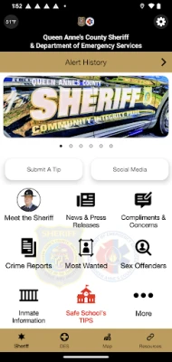 The Queen Anne’s County Sheriff’s Office & Department of Emergency Services mobile application is an interactive app which will help improve our communication with Queen Anne’s County residents, businesses, and visitors. Information will include, but not be limited to contact information, news, emergency alerts, local weather, inmate search, sex offenders, and Most Wanted. Citizens may submit a crime tip directly through the app, as well as see and share social media posts. By empowering people through technology, the Queen Anne’s County Sheriff’s Office and DES will be able to better ensure the public safety of our county.