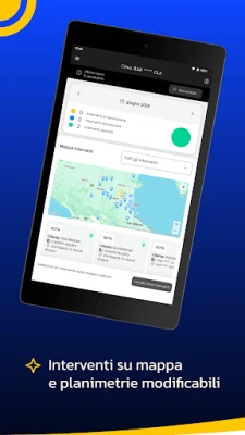 Tramite l’applicazione, presente in tutti i piani d’acquisto e fruibile da qualsiasi dispositivo anche in modalità offline, i manutentori seguono il giro di manutenzione assegnato, effettuano gli interventi, creano ordini, generano report e fatture aggiornando il sistema informativo centrale.